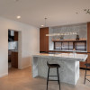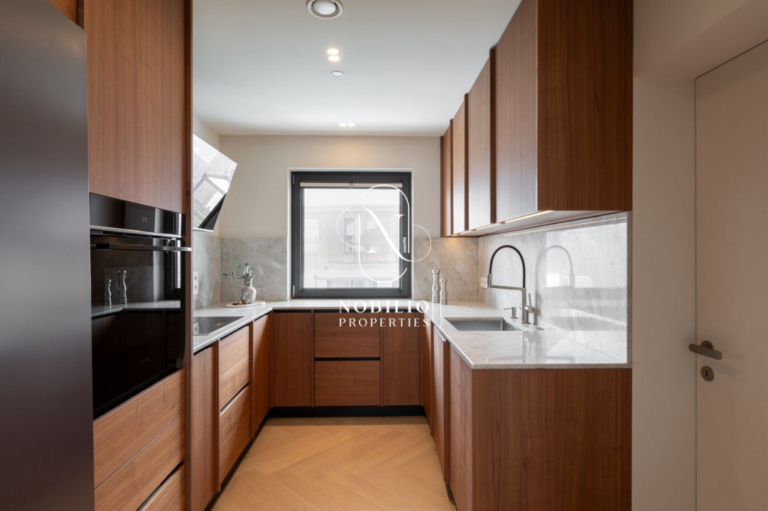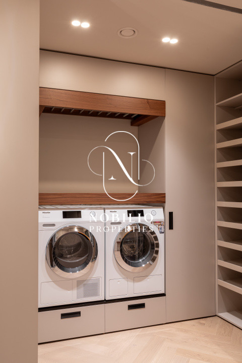 - Excelență germană: două bucătării utilate complet cu electrocasnice Miele și Siemens, inclusiv frigider de vinuri și zonă de espressor retractabilă.