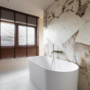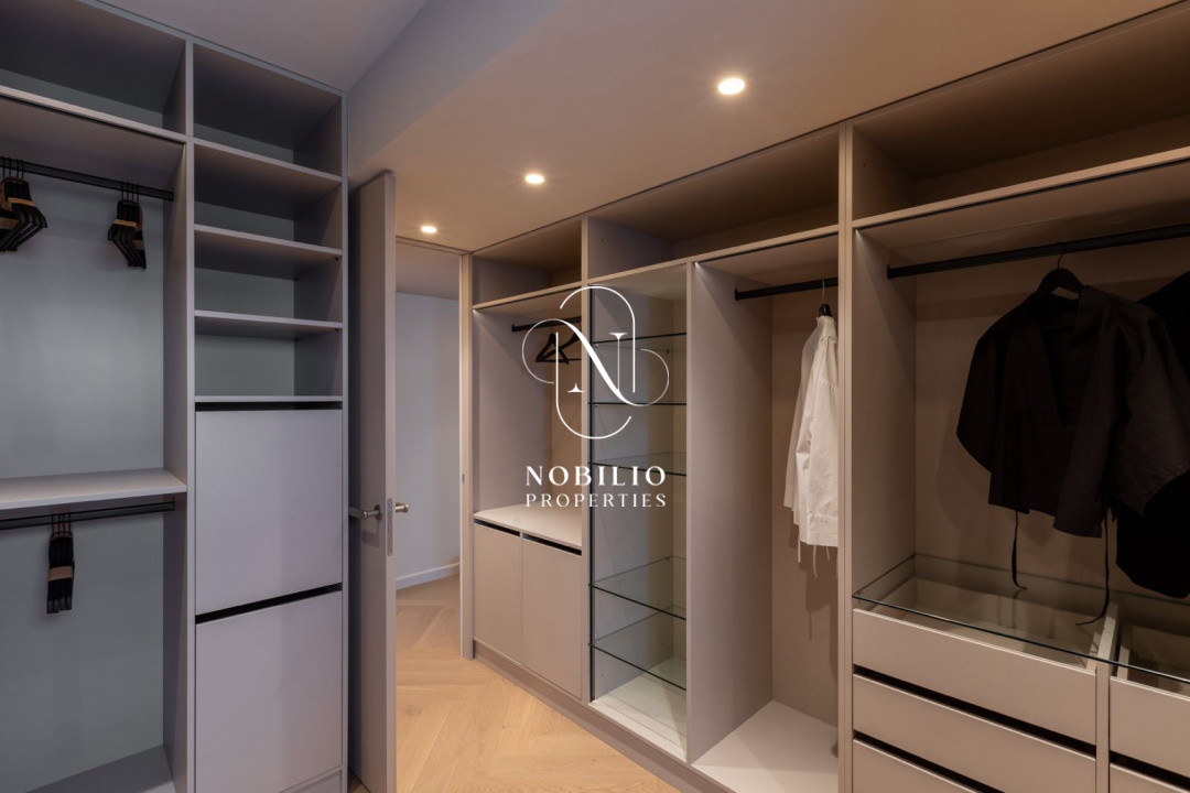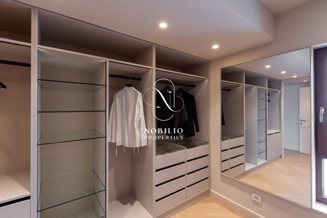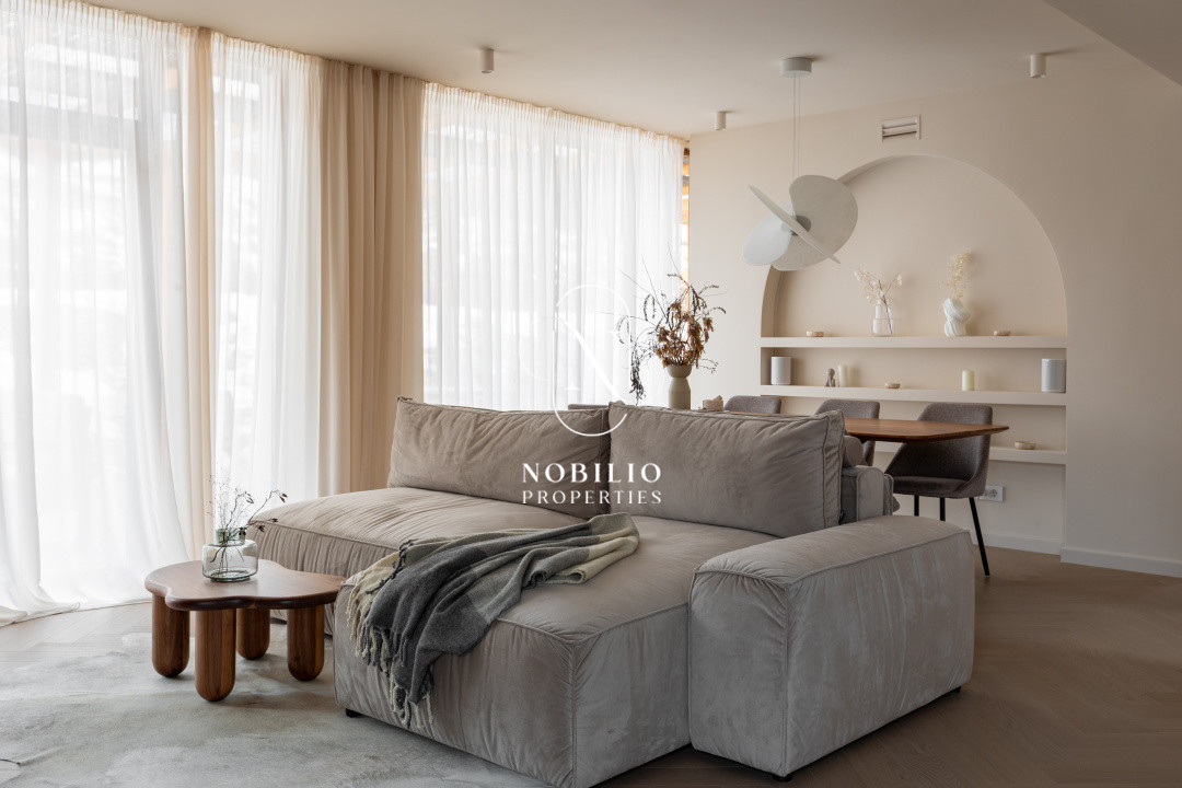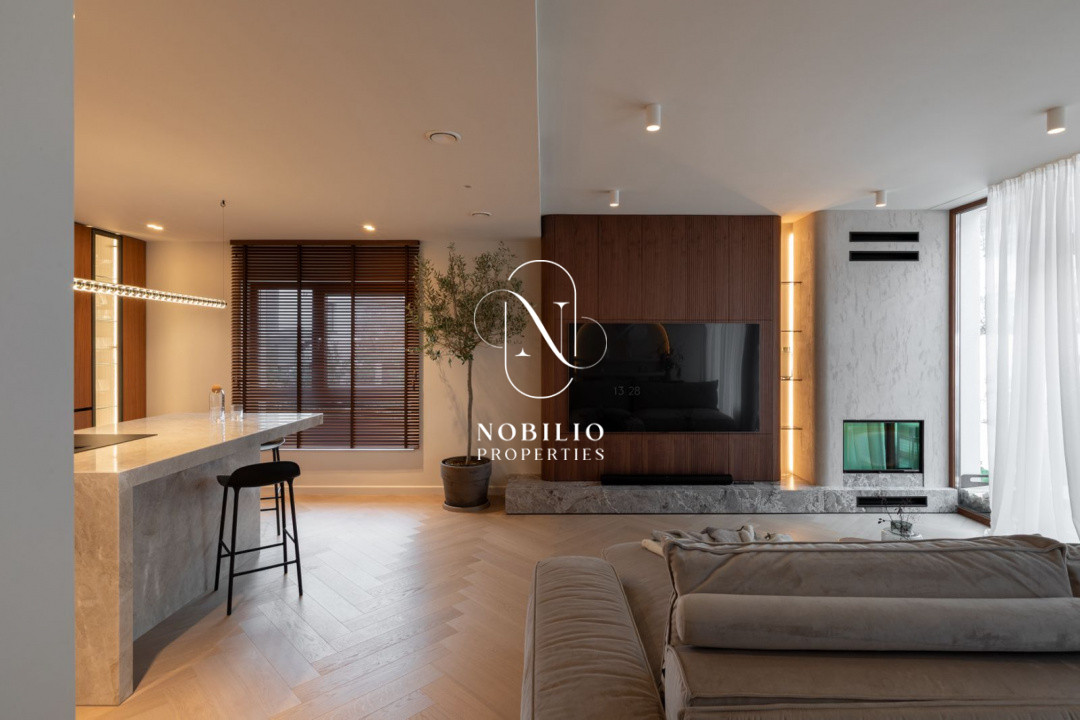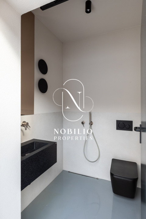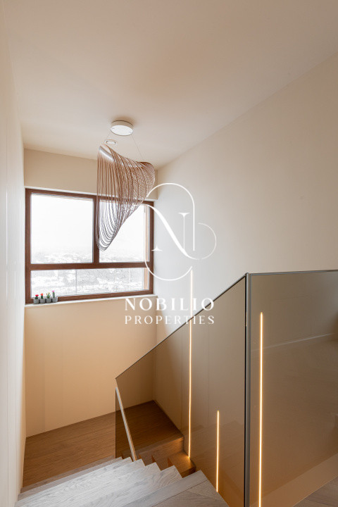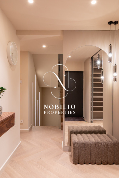 - Finisaje de autor: parchet austriac Weitzer Herringbone, piatră naturală Quartzit Taj Mahal și uși italiene Filomuro Bertolotto.