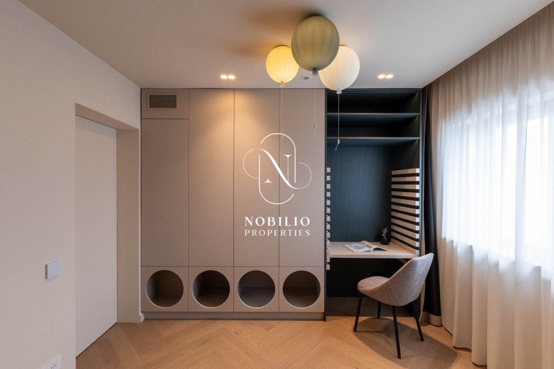 Zona de noapte: Master bedroom cu dressing și baie proprie (finisaje Kuma, Villeroy & Boch), un dormitor secundar și un birou elegant.