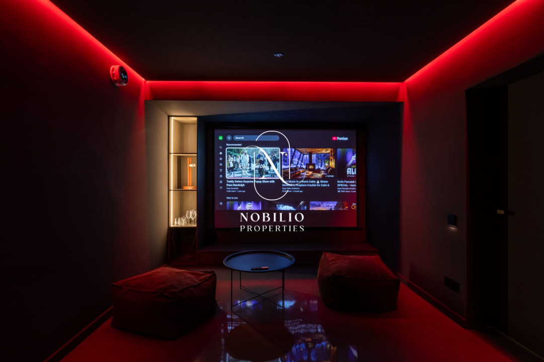 - Mobilier de designer: piese din lemn masiv de nuc american de la Artisan, canapele Mille și sisteme audio Bower & Wilkins integrate în tavan.